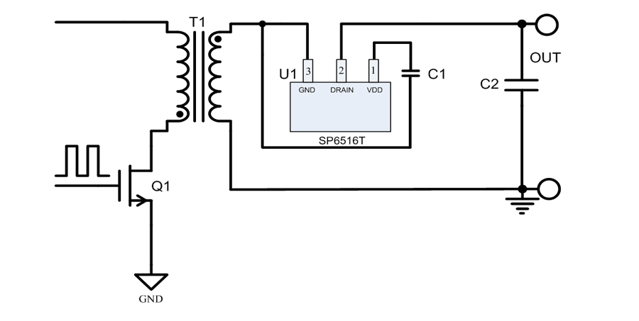 SP6516T是一顆高性能的開關電源次級側同步整流控制電路。在低壓大電流開關電源應用中,輕松滿足6級能效,是理想的超低導通壓降整流器件的解決方案。芯片可支持高達150kHz的開關頻率應用,并且支持CCM / QR / DCM等開關電源工作模式應用,其極低導通壓降產生的損耗遠小于肖特基二極管的導通損耗,極大提高了系統的轉換效率,大幅降低了整流器件的溫度。