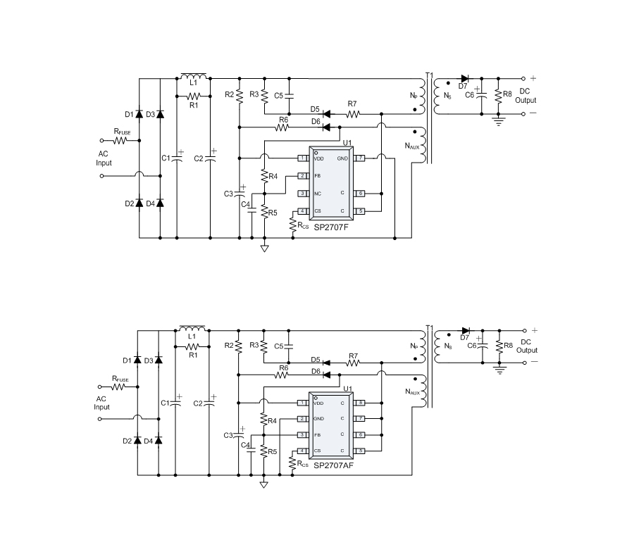 SP2707F是一款性能優(yōu)異的原邊反饋控制電路,應(yīng)用于低成本AC/DC充電器與適配器。